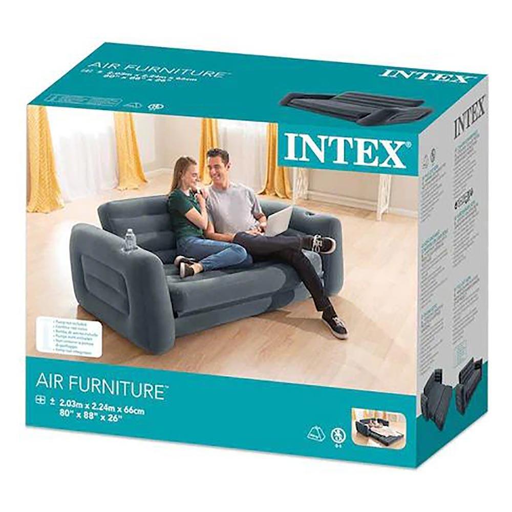 Sofa vazdušna na izvlačenje Intex sofa krevet na naduvanje, na koju udobno mogu da se smeste dvoje ljudi. Sofa vazdušna na izvlačenje pruža komfor doma gde god da krenete. Sofa se izvlačenjem jednostavno pretvara u krevet. Sofa  se može brzo i lako naduvati zahvaljujući ventilu 2u1 sa širokim otvorom. Dimenzije otvorenog dvoseda iznose 203x224x66cm. Na naslonima za ruke sofe ugrađeni su držači za čaše.