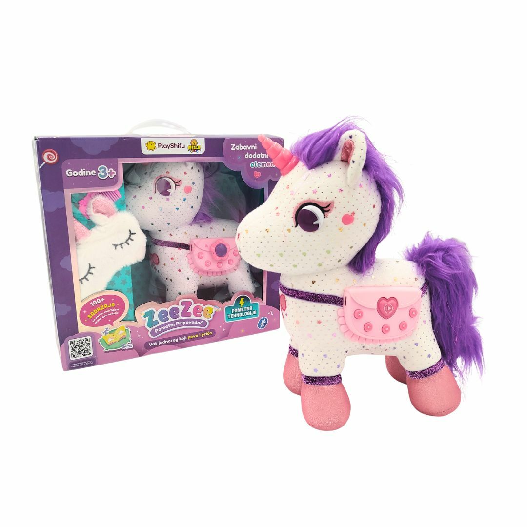 Interaktivni jednorog ZeeZee je pametna plišana igračka koja kombinuje zabavu, učenje i opuštanje u jednom proizvodu. Zahvaljujući naprednoj tehnologiji, ZeeZee donosi deci svet priča, pesmica i uspavanki, pružajući kvalitetno vreme bez upotrebe ekrana.