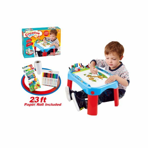 Sto dolazi sa rol papirom, 12 bojica i 12 šarenih markera, pružajući sve što je potrebno za crtanje, bojenje i prve umetničke korake. Kompaktne dimenzije čine ga idealnim za korišćenje u dečijoj sobi, dok stabilna konstrukcija obezbeđuje sigurnost tokom upotrebe.