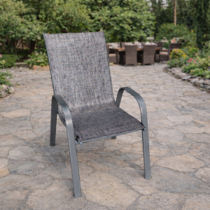 Bastenska garnitura Progarden set Stone gray uključuje prostranu trpezarijsku garnituru (150 x 96 x 71 cm) sa stolom od čvrstog kaljenog stakla i šest ergonomski oblikovanih stolica.Punjenje stolica je napravljeno od izdržljive i elastične sintetičke tkanine koja se neće zagrejati ni na direktnom suncu. Udobne stolice su dimenzija 55 x 73 x 94 cm i mogu nositi do 120 kg. Profili od kojih je nameštaj napravljen su od lagane, ali čvrste legure, što obezbeđuje nisku težinu, ali i stabilnost i dovoljnu nosivost.