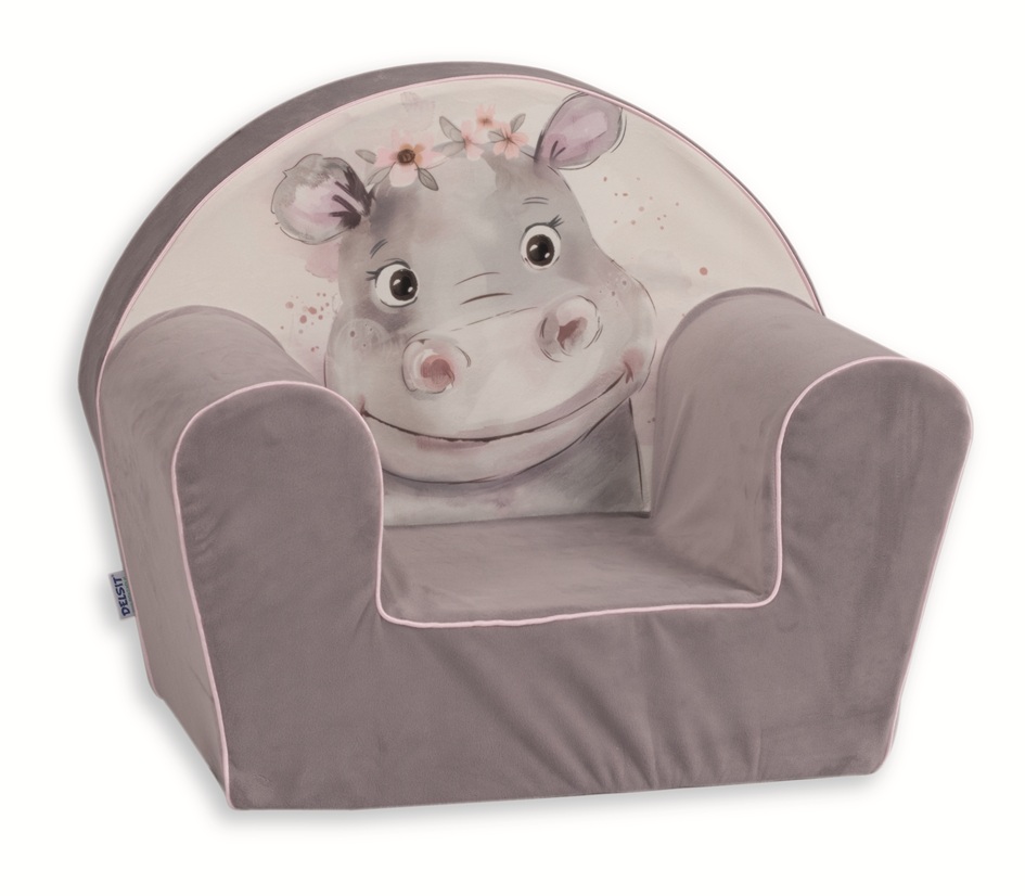 Stabilna konstrukcija od pene pruža sigurnost tokom sedenja, dok atraktivan dizajn sa motivom nilskog konja čini ovu fotelju zanimljivim dodatkom svakoj dečijoj sobi.