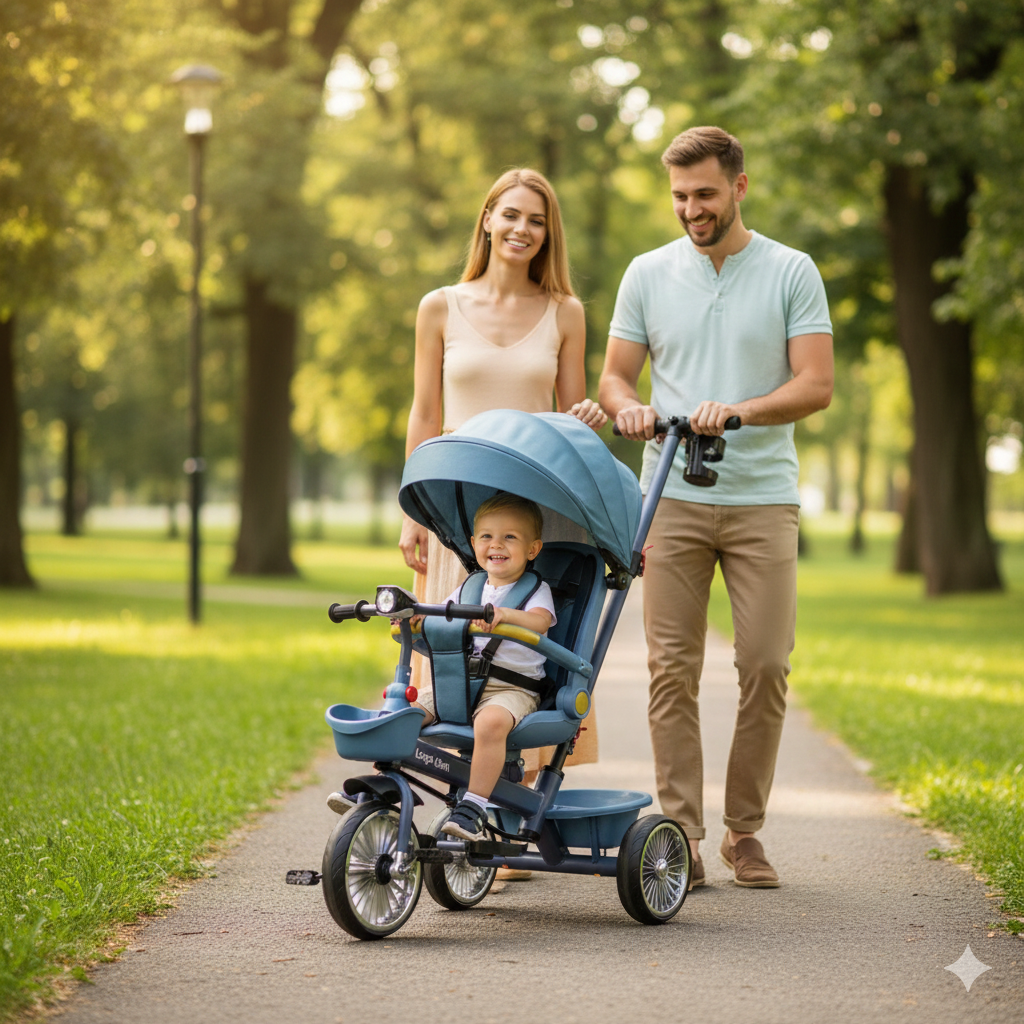 Tricikl Playtime 4003 Sweet Ride plavi idealan je izbor za decu uzrasta 3+ godina, pružajući udobnu, bezbednu i zabavnu vožnju u svim uslovima. Opremljen rotirajućim sedištem, omogućava roditeljima da održe kontakt sa detetom tokom vožnje, što dodatno povećava osećaj sigurnosti. Oborivi naslon pruža udobnost tokom dužih šetnji, dok EVA gume obezbeđuju tihu i stabilnu vožnju bez rizika od bušenja.