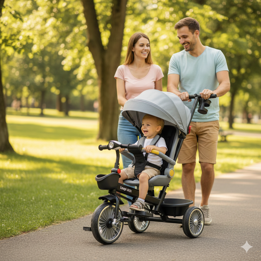 Tricikl Playtime 4003 Sweet Ride sivi idealan je izbor za decu uzrasta 3+ godina, pružajući udobnu, bezbednu i zabavnu vožnju u svim uslovima. Opremljen rotirajućim sedištem, omogućava roditeljima da održe kontakt sa detetom tokom vožnje, što dodatno povećava osećaj sigurnosti. Oborivi naslon pruža udobnost tokom dužih šetnji, dok EVA gume obezbeđuju tihu i stabilnu vožnju bez rizika od bušenja.