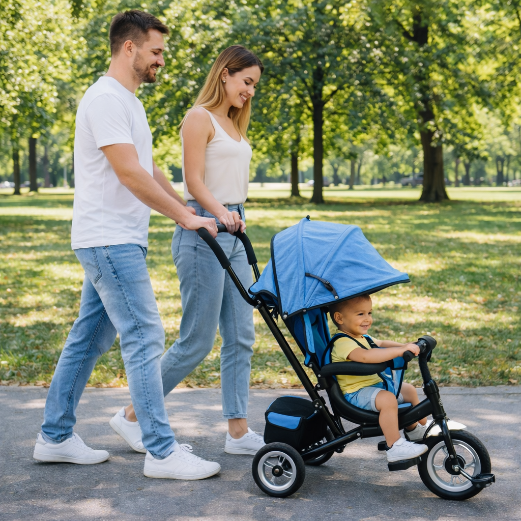 Dečiji tricikl Playtime 411 predstavlja praktično i dugotrajno rešenje za bezbednu i udobnu vožnju vašeg deteta. Dizajniran kao 3u1 model, omogućava korišćenje od najranijeg uzrasta kao guralica uz potpunu kontrolu roditelja, pa sve do faze samostalnog pedaliranja.