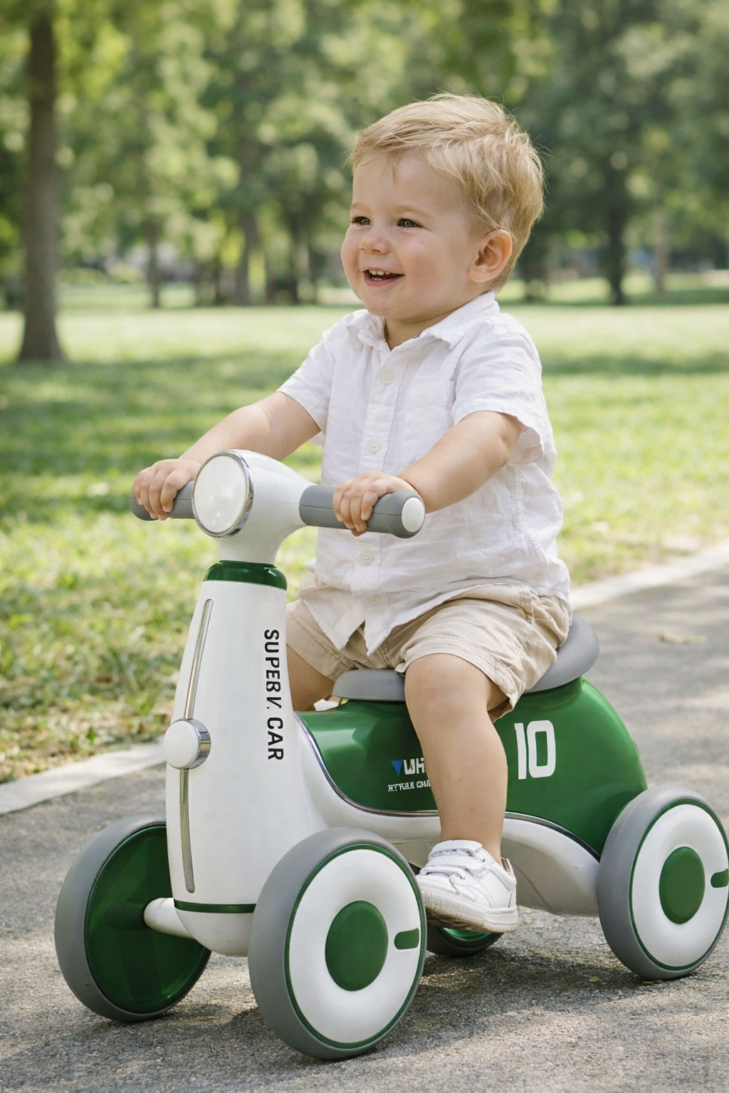 Široka konstrukcija sa četiri točka omogućava maksimalnu stabilnost, što je posebno važno za decu koja tek razvijaju ravnotežu. Lagan dizajn omogućava lako upravljanje, dok ergonomsko sedište pruža udobnost tokom vožnje.