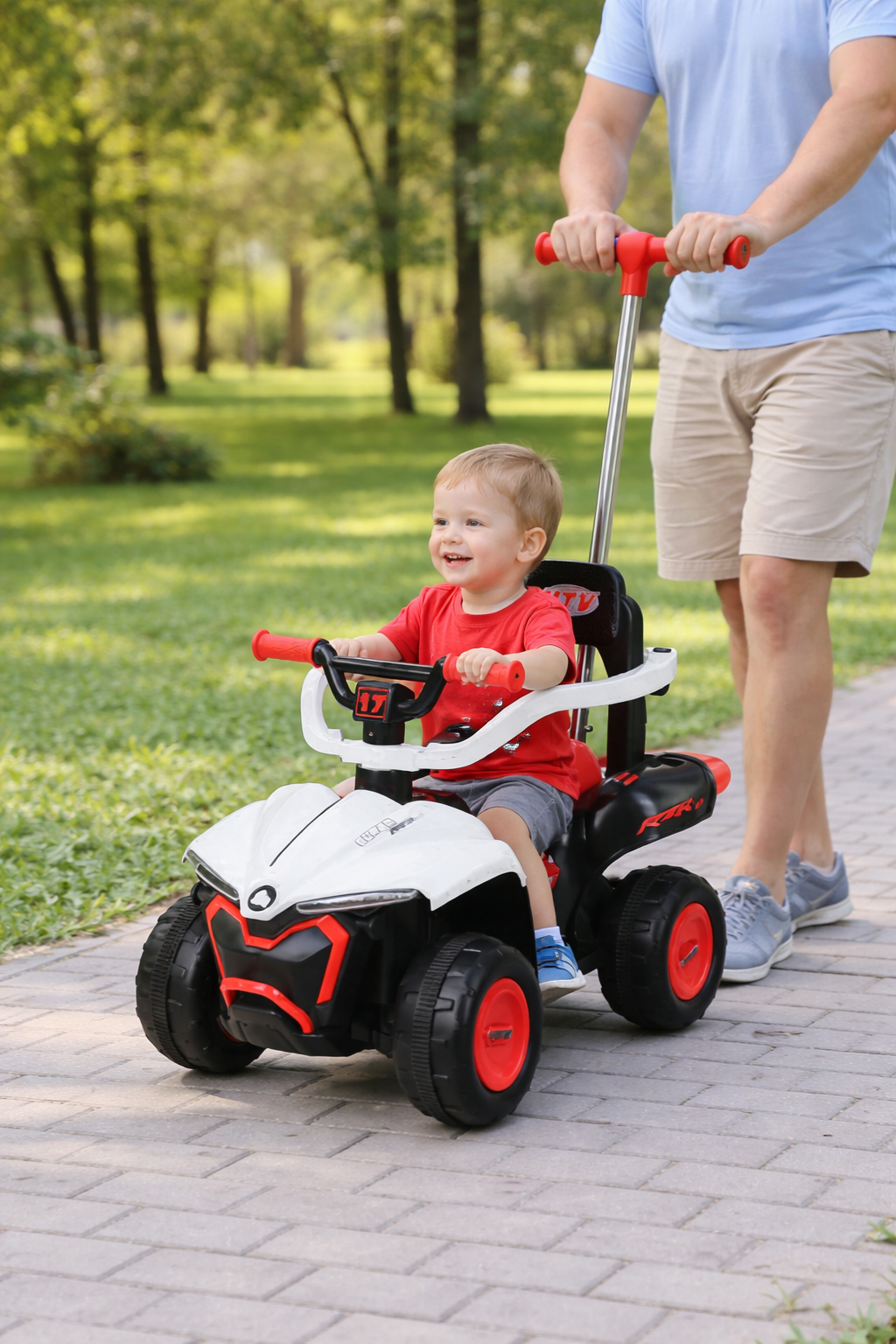 Atraktivan dizajn u obliku mini ATV vozila dodatno privlači pažnju dece i čini vožnju još zanimljivijom.