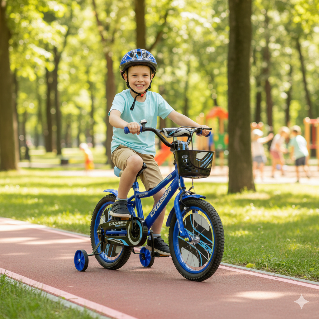 Dečiji bicikl 16” Crosser plava (šifra: 724-16) je idealan izbor za decu koja uče da voze bicikl. Sa izdržljivom konstrukcijom, sigurnosnim dodacima i atraktivnim dizajnom, ovaj bicikl pruža stabilnost, udobnost i zabavu tokom vožnje.