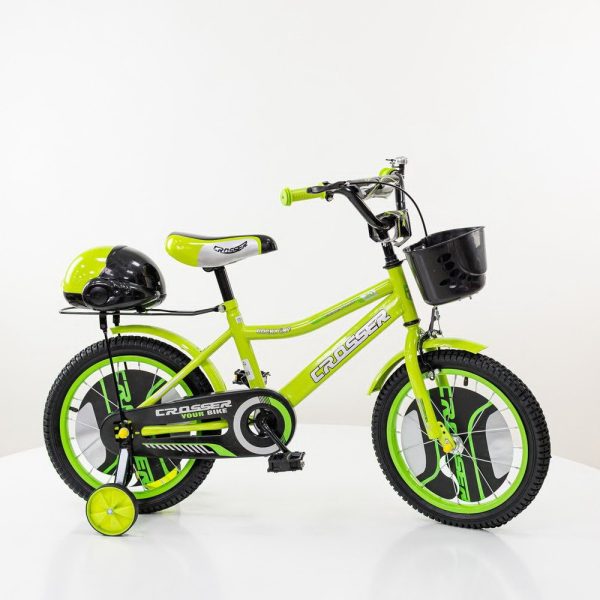 Dečiji bicikl 16” Crosser zelena (šifra: 724-16) je idealan izbor za decu koja uče da voze bicikl. Sa izdržljivom konstrukcijom, sigurnosnim dodacima i atraktivnim dizajnom, ovaj bicikl pruža stabilnost, udobnost i zabavu tokom vožnje.